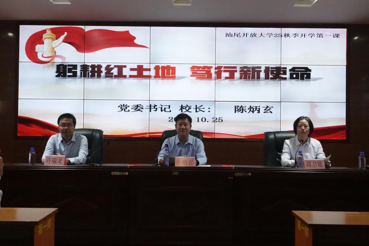 學(xué)校黨委書記、校長(zhǎng)陳炳玄,校領(lǐng)導(dǎo)以及全體黨員干部、教職工,2025級(jí)秋季開放教育全體新生共同參加此次活動(dòng)。汕尾開放大學(xué)在籍老生通過(guò)直播平臺(tái)在線觀看“開學(xué)第一課”。學(xué)校黨委委員、副校長(zhǎng)譚書敬主持開學(xué)典禮。