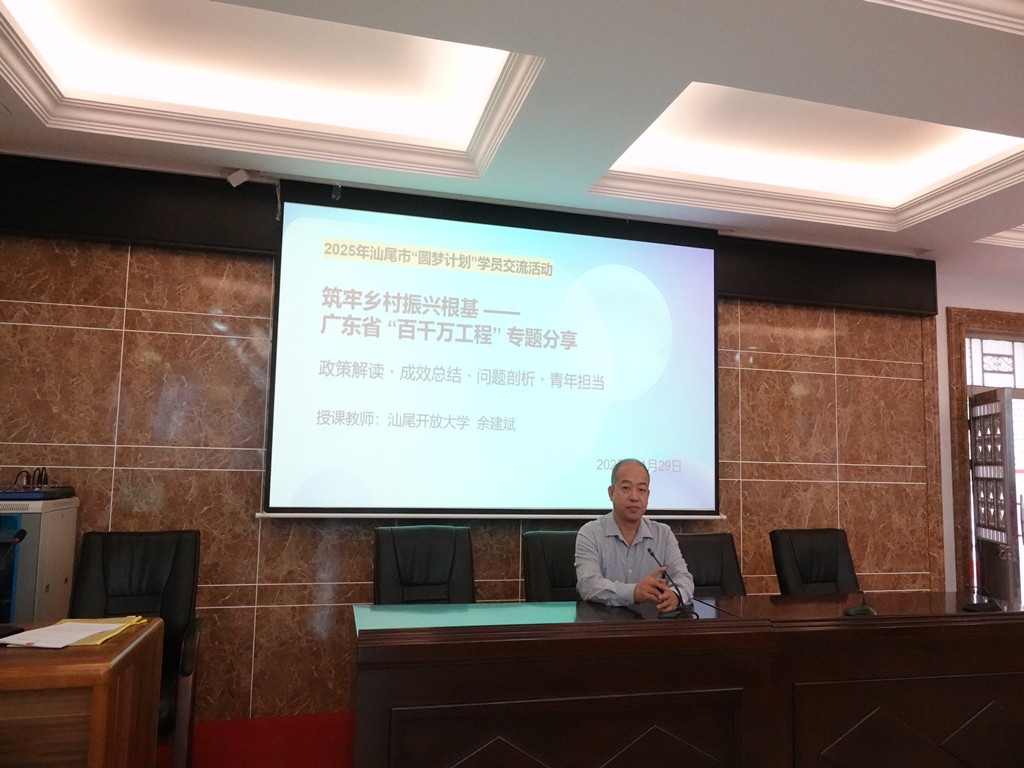 為深入學(xué)習(xí)貫徹習(xí)近平總書記關(guān)于青年工作的重要思想及視察廣東重要講話精神,落實(shí)省委省政府《廣東中長(zhǎng)期青年發(fā)展規(guī)劃(2018—2025年)》等文件要求,進(jìn)一步加強(qiáng)“圓夢(mèng)計(jì)劃”學(xué)員思想政治引領(lǐng),培養(yǎng)服務(wù)縣域高質(zhì)量發(fā)展的青年骨干人才,2025年11月29日,由團(tuán)汕尾市委、汕尾開(kāi)放大學(xué)聯(lián)合舉辦的2025級(jí)汕尾市“青馬工程”暨“‘百千萬(wàn)工程’圓夢(mèng)計(jì)劃”學(xué)員交流營(yíng)活動(dòng)順利開(kāi)展,汕尾開(kāi)放大學(xué)黨委書記校長(zhǎng)陳炳玄、黨委委員副校長(zhǎng)譚書敬、團(tuán)市委副書記詹博揚(yáng)等及60余名學(xué)員齊聚汕尾開(kāi)放大學(xué)學(xué)術(shù)報(bào)告廳,共同開(kāi)啟為期一天的學(xué)習(xí)成長(zhǎng)之旅。